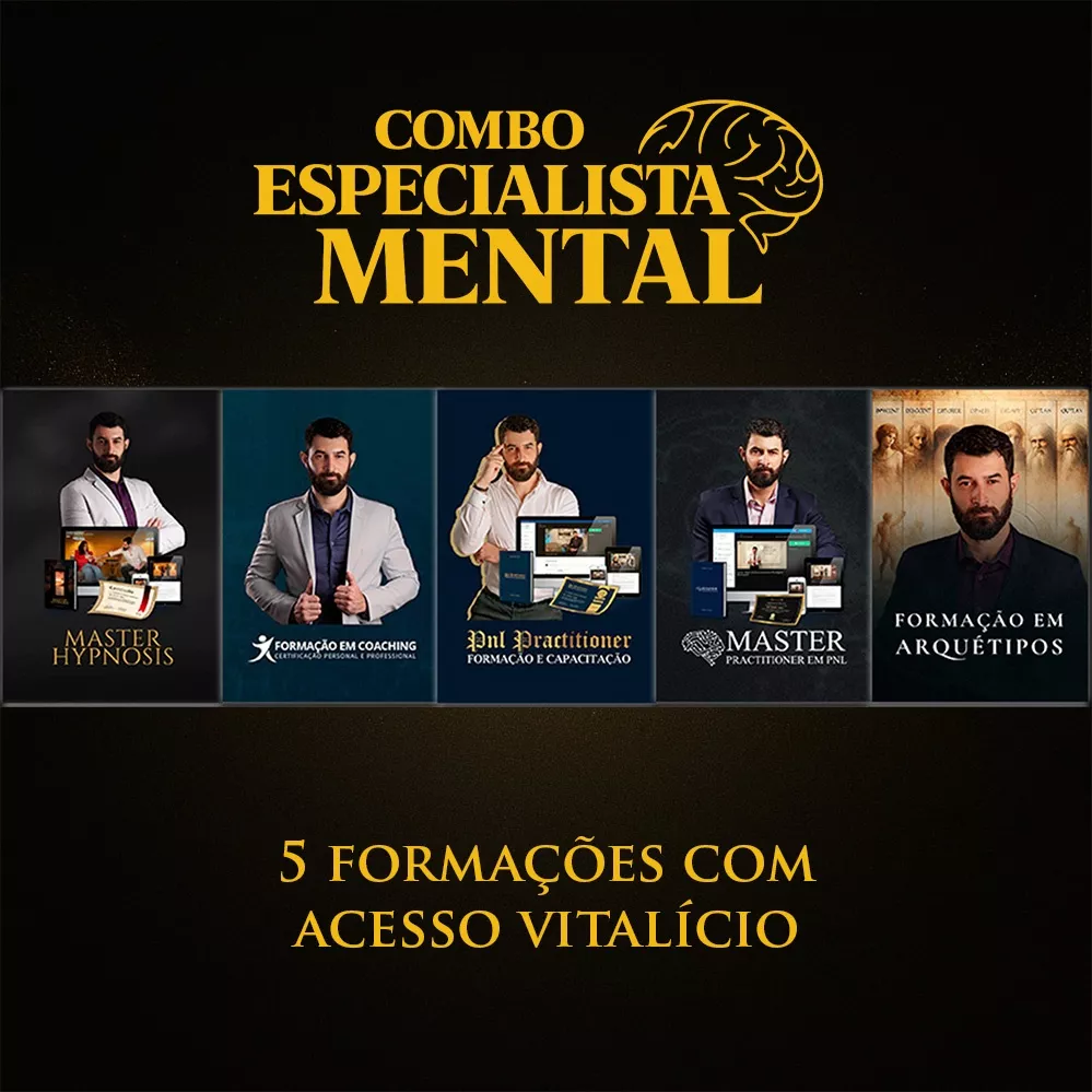 O Combo Combo Especialista Mental oferece uma base estruturada para quem deseja compreender profundamente mente, comportamento e comunicação, com acesso vitalício a 5 formações essenciais, organizadas e independentes, que servem como ponto de partida sólido para múltiplas possibilidades de aplicação ao longo do tempo.